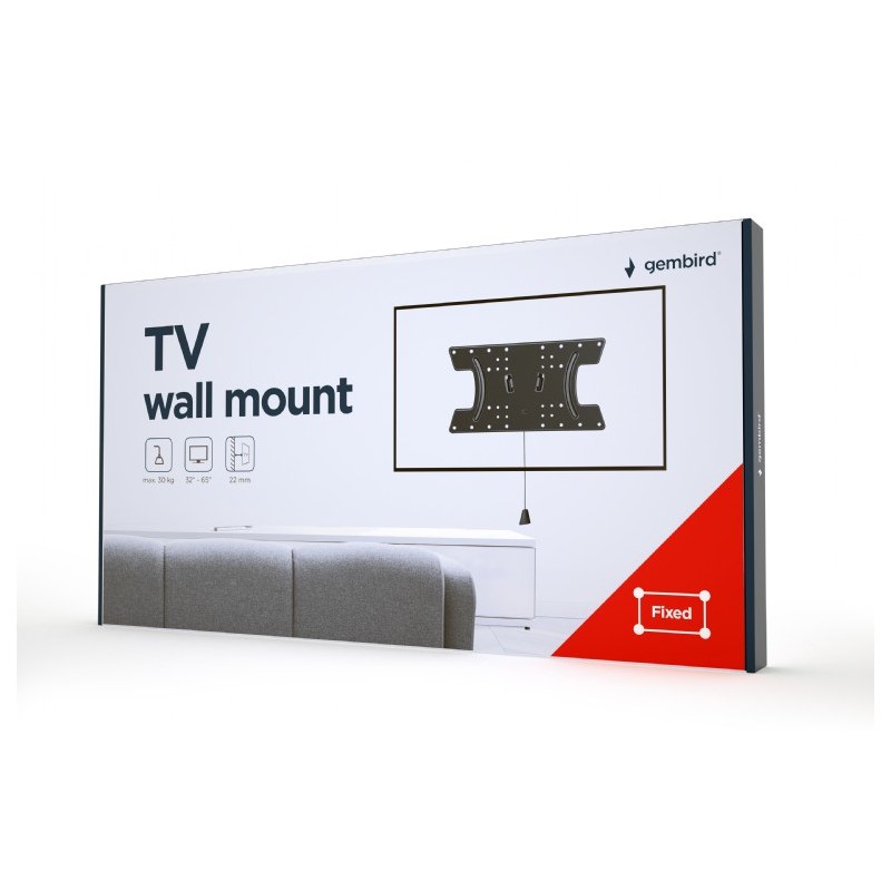 Fiksni jekleni stenski TV nosilec Gembird WM-65F-03, za zaslone velikosti 32″- 65″.