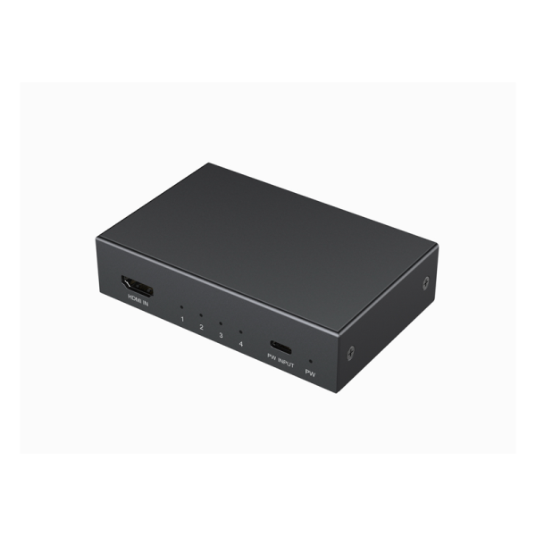 Pošlje en sam 4K HDMI signal na 4 ločene monitorje, projektorje ali televizorje. Napaja se lahko s katerim koli standardnim USB napajalnikom. Podpira ločljivosti 4K UHD pri 30 Hz.