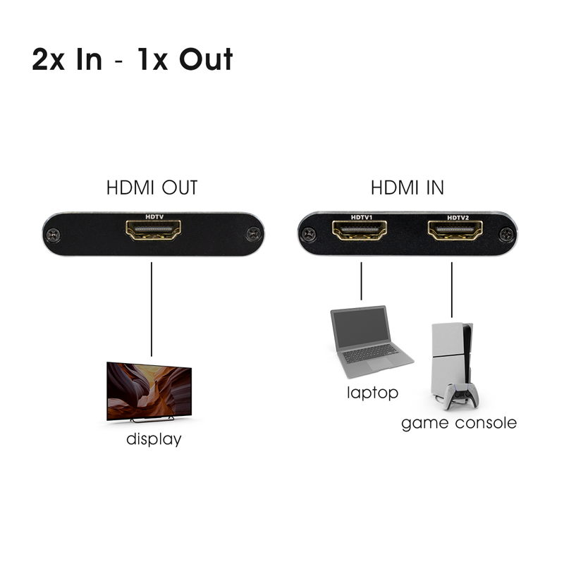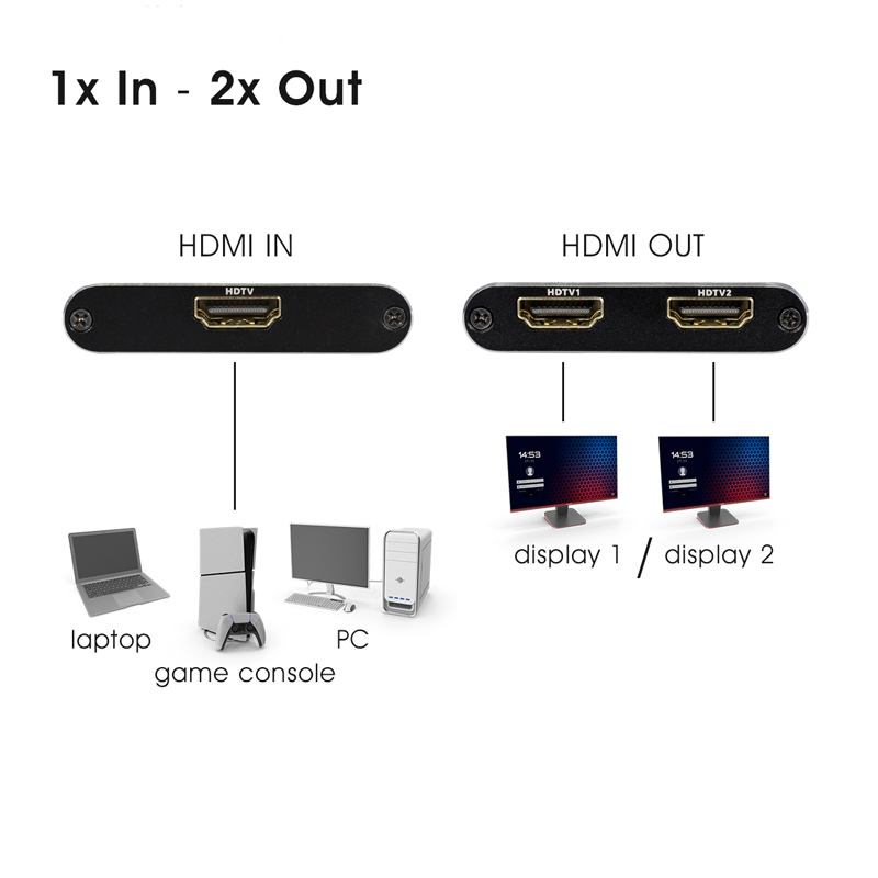 - Za povezavo dveh vira HDMI na en zaslon ali enega vira HDMI na dva zaslona