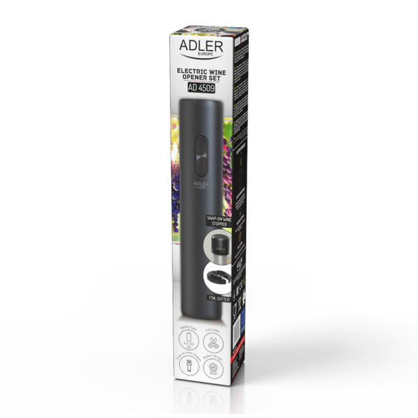 Komplet Adler AD 4509 je odlično darilo za vsakega ljubitelja vina. Zaradi elegantne oblike, enostavne uporabe in funkcionalnosti je nepogrešljiv pripomoček za vsako večerjo ali druženje s prijatelji.