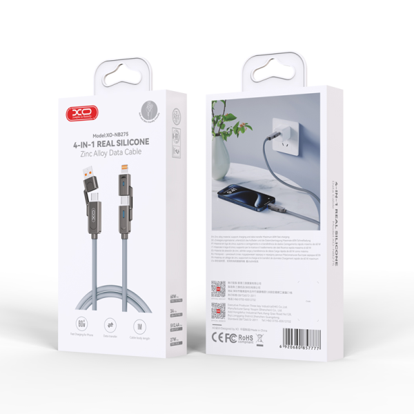 XO NB275 je kabel 4 v 1, opremljen s priključki USB + USB-C na Lightning + USB-C. Kabel je zasnovan tako, da zagotavlja največje udobje za vsakodnevno uporabo.