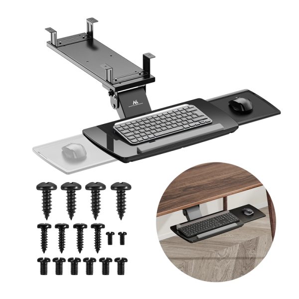 Nosilec za tipkovnico Maclean MC-156 je praktična in ergonomska rešitev za tiste, ki cenijo red in udobje v svojem delovnem prostoru. Držalo, nameščeno pod mizo, omogoča učinkovito uporabo delovnega prostora, hkrati pa zagotavlja udoben položaj za tipkanje.