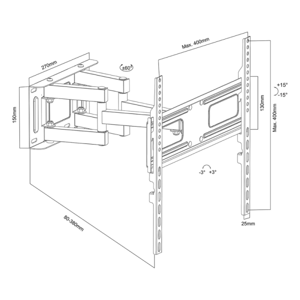 • Združljivost VESA: 75×75, 100×100, 200×100, 200×200, 300×300, 400×200, 400×400 mm