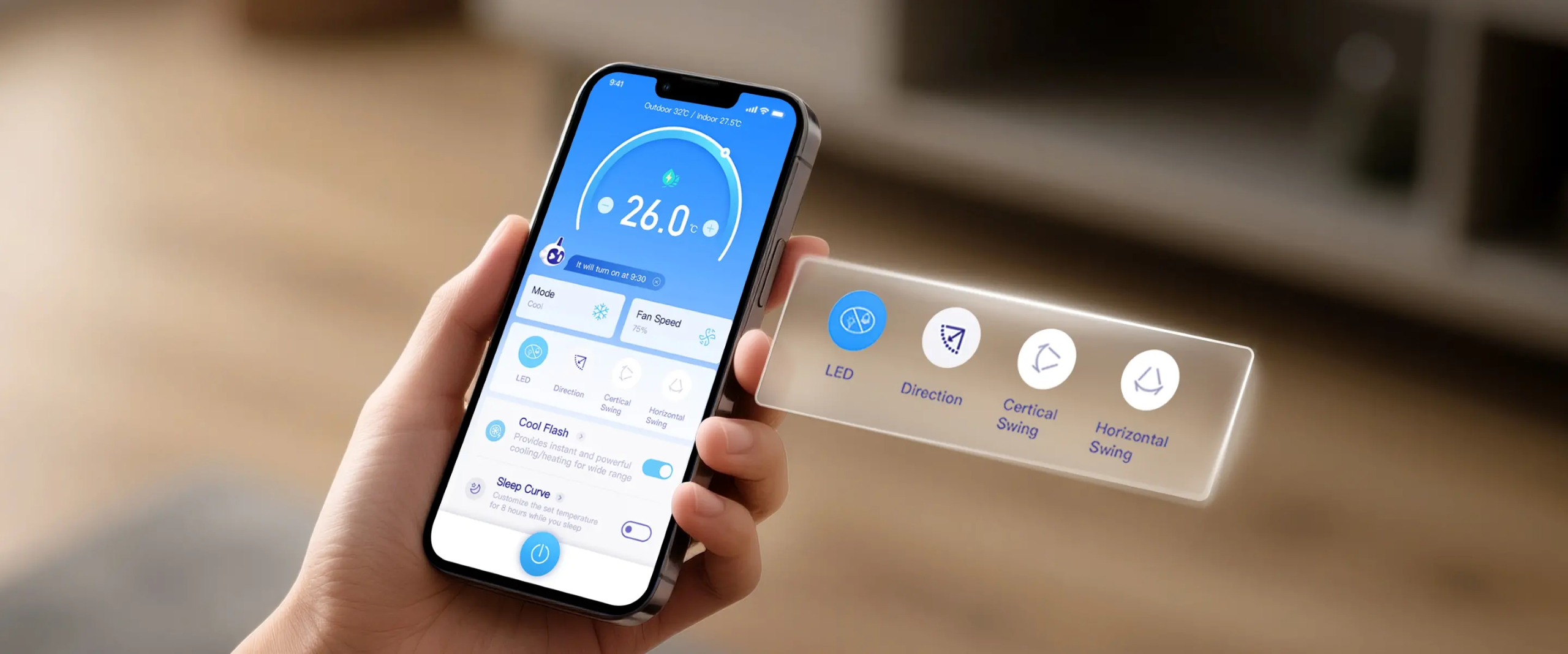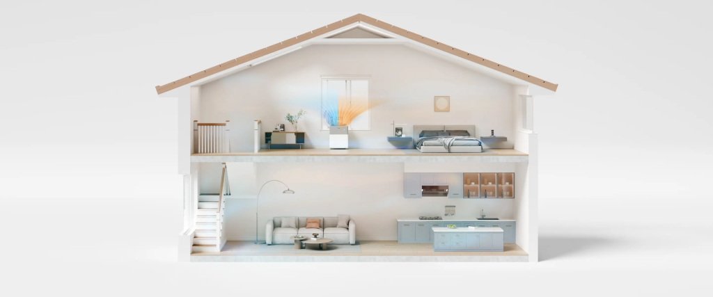 Prilagodljivi odbojnik in nastavljiv tok zraka zagotavljata udobno izkušnjo. Hladen zrak se usmerja navzgor za boljšo cirkulacijo, topel zrak pa navzdol za hitrejše ogrevanje prostora.