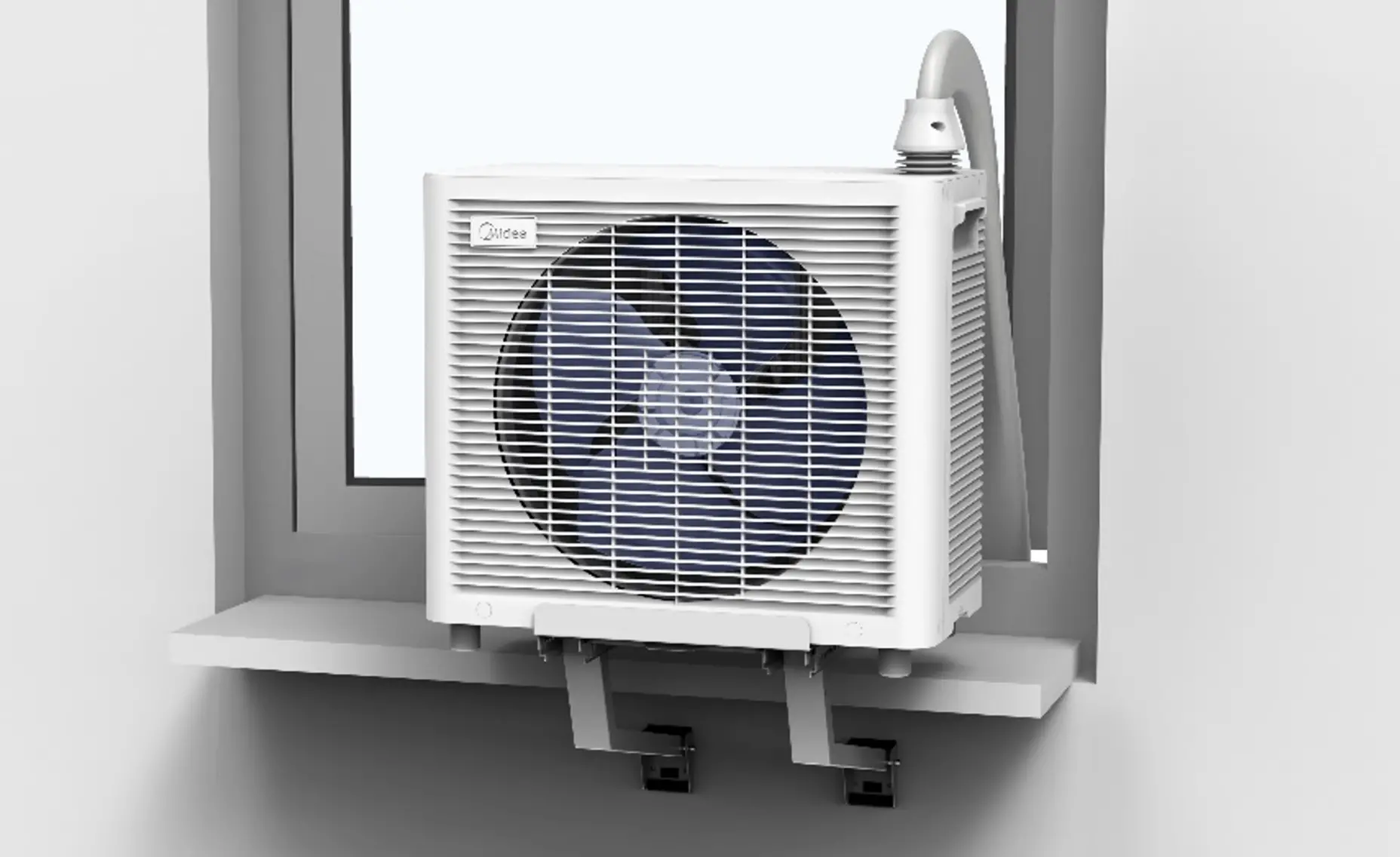 Namestitev PortaSplit je izjemno preprosta – brez potrebe po vrtanju, orodju ali inštalaterju. Tri preprosti koraki vam omogočijo popolno delovanje: pritrditiev nosilca, postavitev zunanje enote na nosilec in že lahko uživate v udobju. Sistem je primeren za različne vrste oken in je zato univerzalno uporaben.