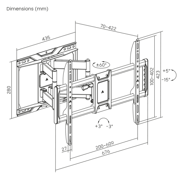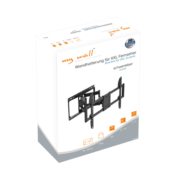 Izvlečni stenski nosilec za TV MyWall HF 23L od 37″ do 90″ (94 – 229 cm) z nosilnostjo 75 kg.