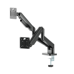 Jekleni mizni nosilec za dva monitorja Gembird MA-D2-06, primeren za zaslone od 17″ do 32″. Nosilci omogočajo vrtenje, iztegovanje, zlaganje ali nagibanje zaslona ter vrtenje zaslonov iz ležečega v pokončni položaj.