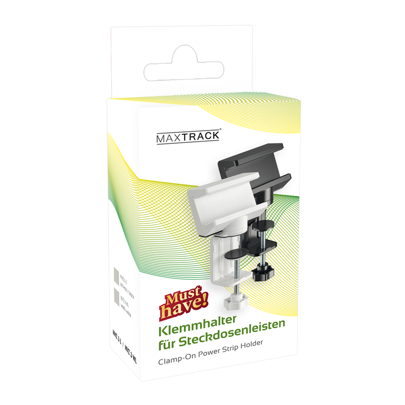 Držalo za vtičnico MaxTrack je idealna rešitev za varno pritrditev vtičnice na rob mize. Zahvaljujoč funkciji obračanja za 180 stopinj je vtičnica dostopna brez težav. Namesti se lahko na robove mize debeline od 9 do 59 mm in je združljiv z večino razdelilcev širine od 40 do 70 mm.
