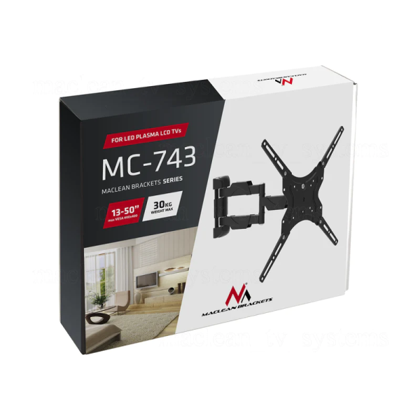 Jekleni stenski TV nosilec Maclean MC-743 z možnostjo izvleka in obračanja, za zaslone velikosti 13″- 50″.