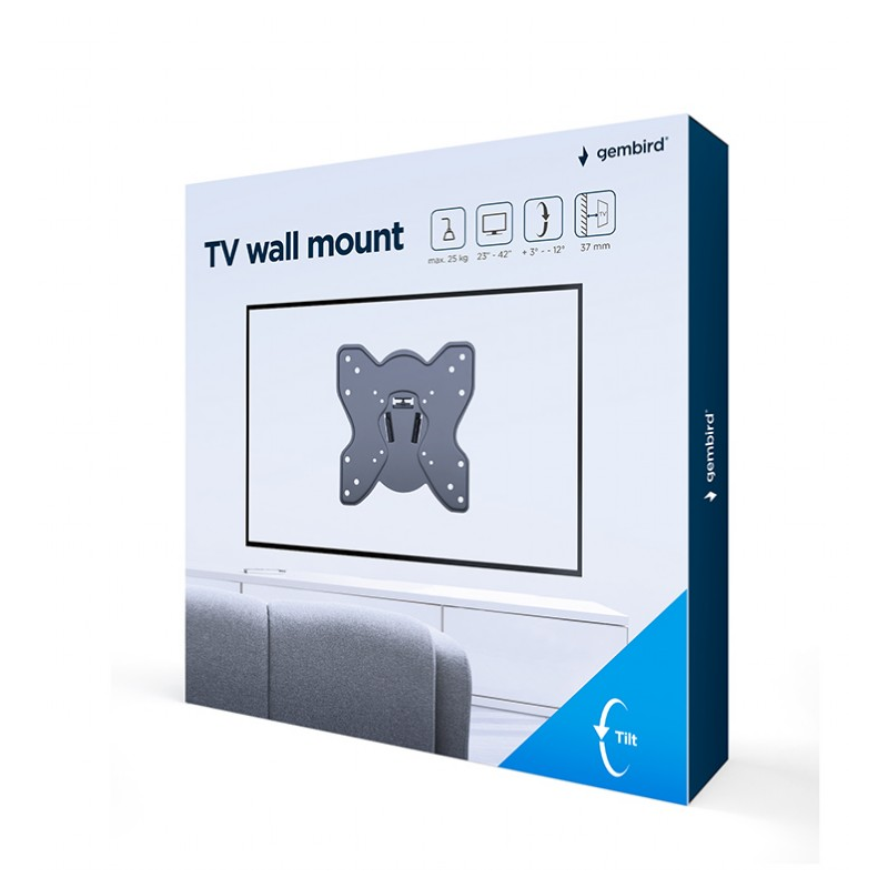 Jekleni fiksni TV stenski nosilec Gembird WM-42T-03 za zaslone velikosti 23″- 42″.