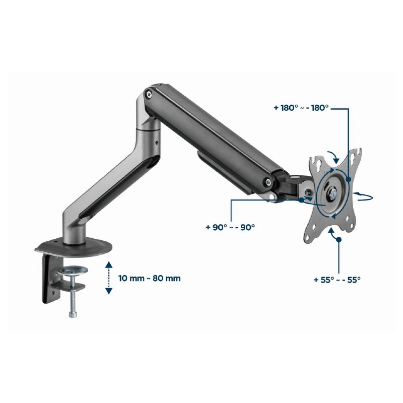 Jekleni mizni nosilec za LCD monitor Gembird MA-DA1-05, primeren za zaslone od 17″ do 32″.