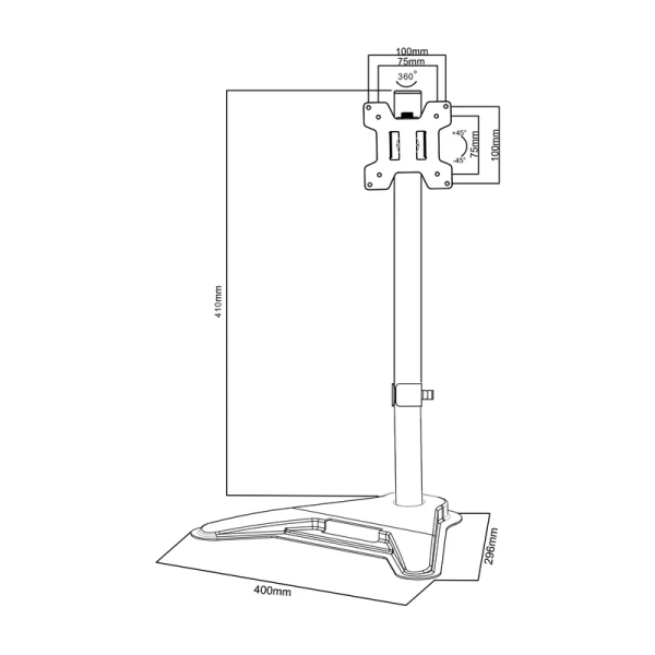 - Zasnovan za monitorje z diagonalo zaslona: od 13 ” do 27″