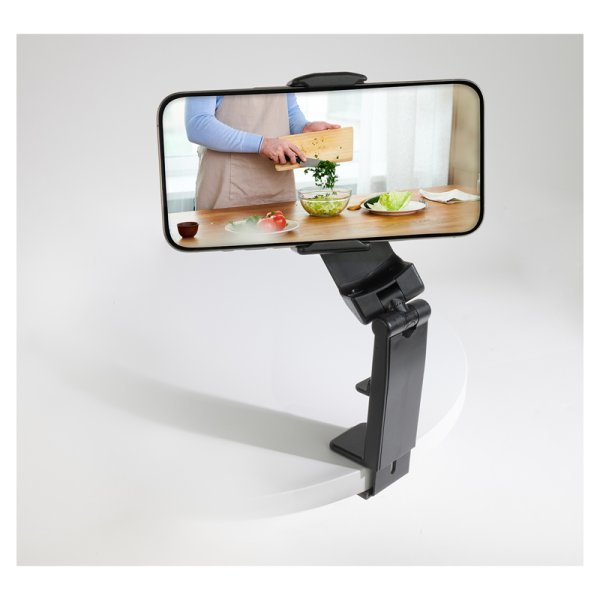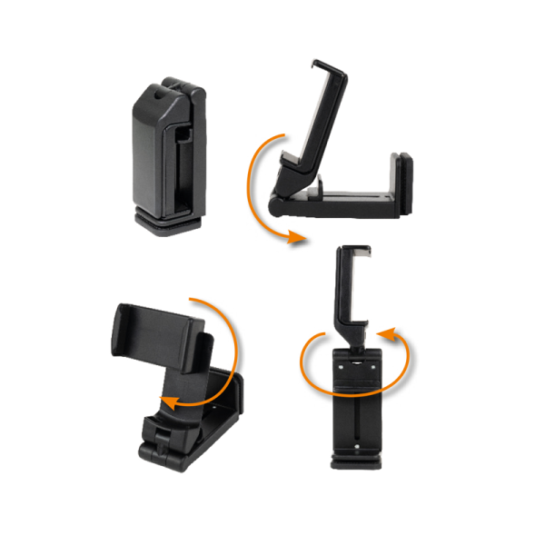Nosilec za mobilni telefon s funkcijo vpenjanja MyWall HT 51L. Zahvaljujoč funkciji gladkega vpenjanja se mobilni telefon drži varno in trdno na mestu. Nosilec omogoča obračanje, nagibanje in preklop telefona iz pokončnega v ležeči format.