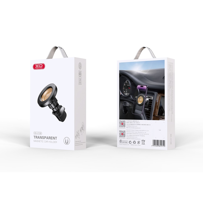 XO C129 je univerzalno magnetno držalo za namestitev na prezračevalno rešetko v avtomobilu. Njegove majhne dimenzije se bodo odlično podale v vsak prostor. V kompletu so kovinske nalepke.