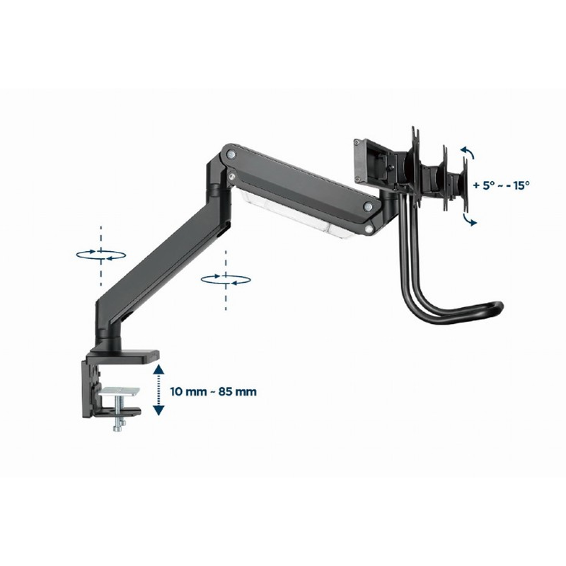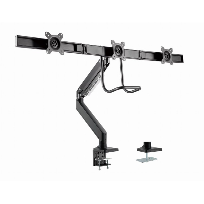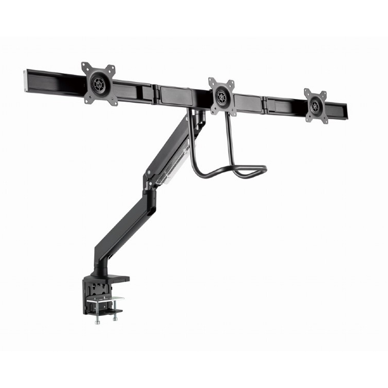 Jekleni mizni nosilec za tri LCD monitorje Gembird MA-D3-03, primeren za zaslone od 17″ do 27″.