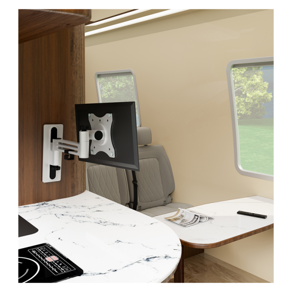 Vrtljiv stenski TV nosilec MyWall HC 1-2L z 2 individualno nastavljivimi spoji je primeren za vgradnjo v avtodome in prikolice.