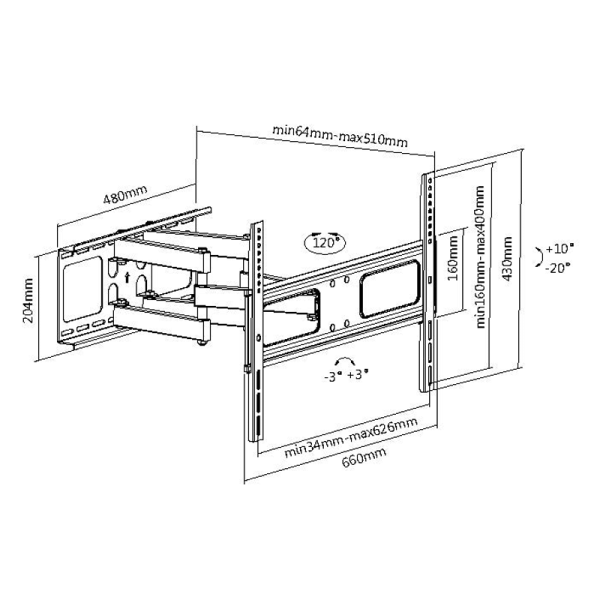 • Oddaljenost od stene do TV 64 – 510 mm