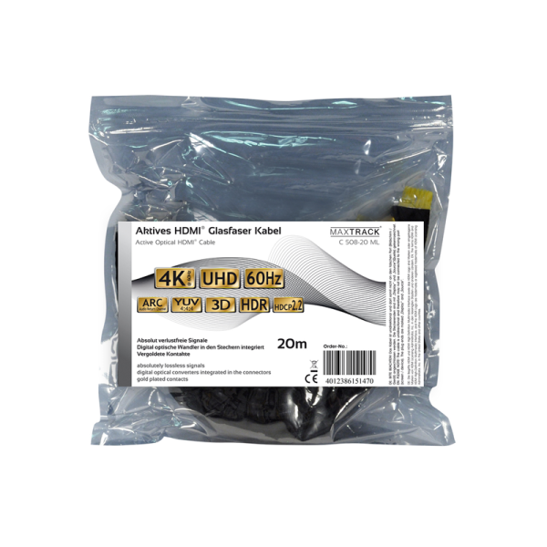 Aktivni optični HDMI kabel dolžine 20m, s podporo ločljivosti 4K pri 60 Hz.