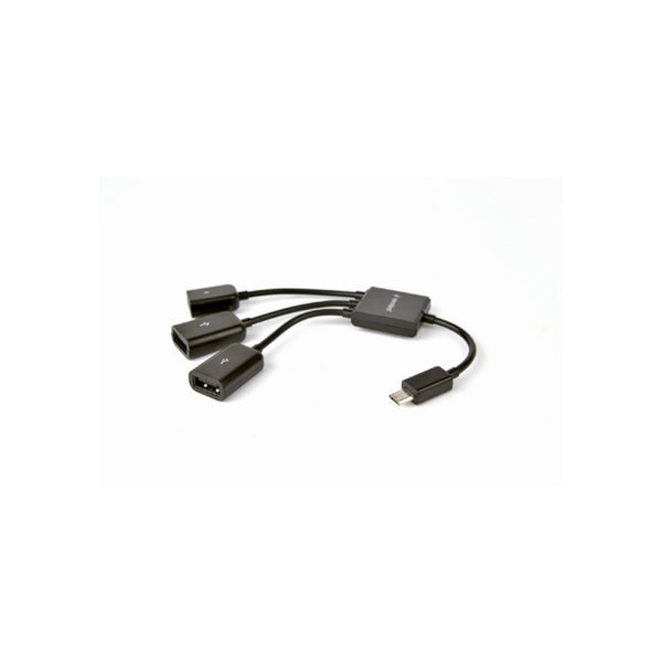 Omogoča priključitev dveh standardnih zunanjih naprav USB na pametne telefone in tablične računalnike Micro-USB OTG. Vrata Micro-USB omogočajo dodatno napajanje povezanih naprav OTG. Vgrajen moški priključni kabel Micro-USB. Za večino naprav OTG ni potrebno zunanje napajanje.
