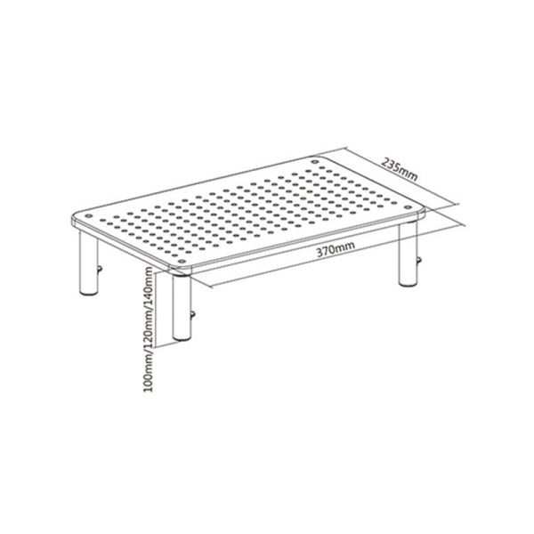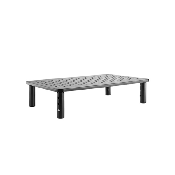 Po višini nastavljivo jekleno stojalo za monitor/prenosni računalnik. Kompaktna oblika v obliki pravokotnika se popolnoma prilega kateri koli mizi. 3 nastavitve višine za optimalno višino gledanja.