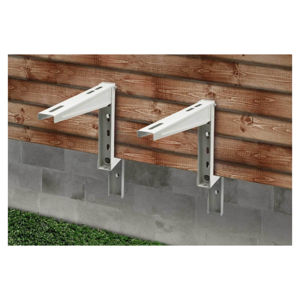 Jekleni nosilci za zunanjo enoto klimatske naprave. Primerni za montažo na lesene in montažne hiše.