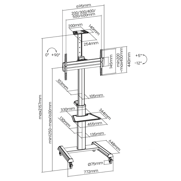 - Dimenzije stojala: 772 x 648 x 2157 mm