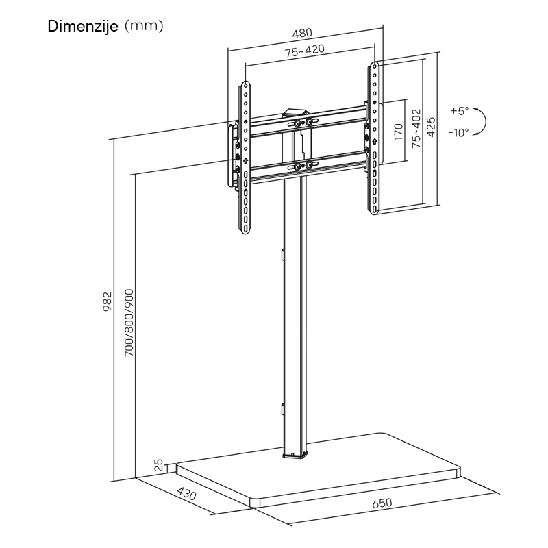 - Zasnovan za velikosti zaslona: 32 do 65” (81- 165 cm)