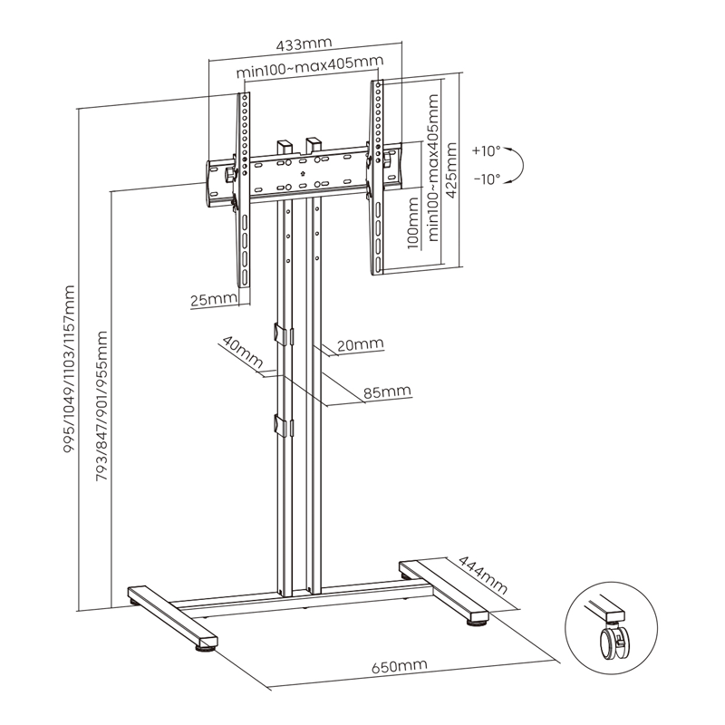 • Naklon: + 10 ° / -10 °