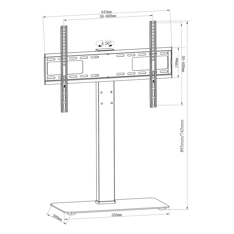 - Osnovna plošča: 550 x 280 mm, izdelana iz varnostnega stekla