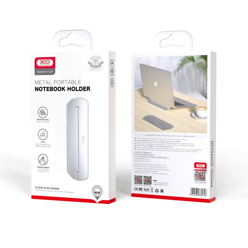 XO C87 je zložljivo, prenosno in univerzalno stojalo za prenosnike, tablice in pametne telefone. Ima nastavljiv kot nagiba in je iz kovine.