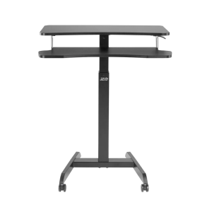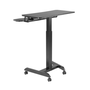 Praktična in mobilna miza ErgoOffice ER444 črne barve. Zahvaljujoč sistemu plinskih vzmeti je mogoče višino mize brezstopenjsko nastaviti od 80 do 120 cm. Izboljša ergonomijo vašega delovnega mesta in zagotavlja večjo učinkovitost pri delu.