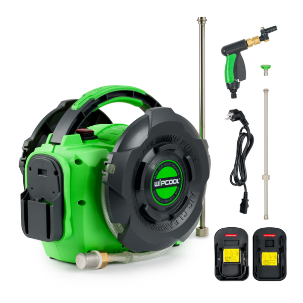 Baterijski visokotlačni čistilnik WIPCOOL C10B je sodobna naprava, zasnovana za čiščenje uparjalnikov klimatskih naprav. Napaja ga litij-ionska baterija, kar zagotavlja popolno mobilnost in enostavno uporabo na območjih brez dostopa do elektrike. Je lahek, enostaven za uporabo in idealen za servisiranje HVAC sistemov v zahtevnih okoljih, kot so strehe in zaprti prostori.