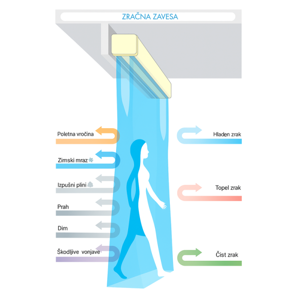 Zračne zavese Mitsubishi Electric so odličen način, da v svojih prostorih zagotovite udobno, čisto in higiensko okolje, hkrati pa prihranite energijo s tihim, učinkovitim in zmogljivim delovanjem. Zračna zavesa ne le učinkovito izolira temperaturo (tj. preprečuje izgubo hladnega zraka med hlajenjem in izgubo toplote med ogrevanjem), temveč lahko vaše prostore zaščiti tudi pred neprijetnimi elementi iz zunanjega okolja.